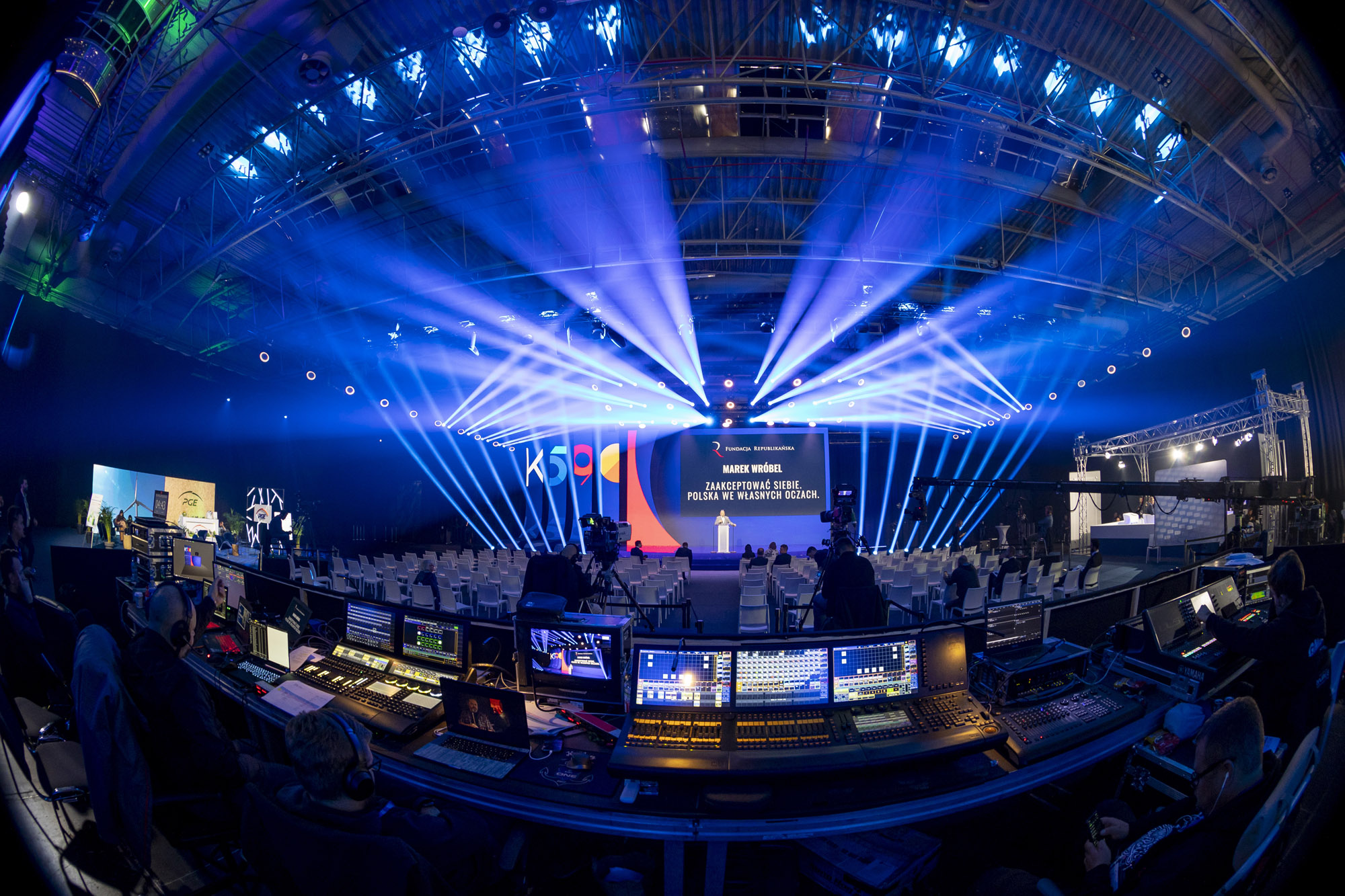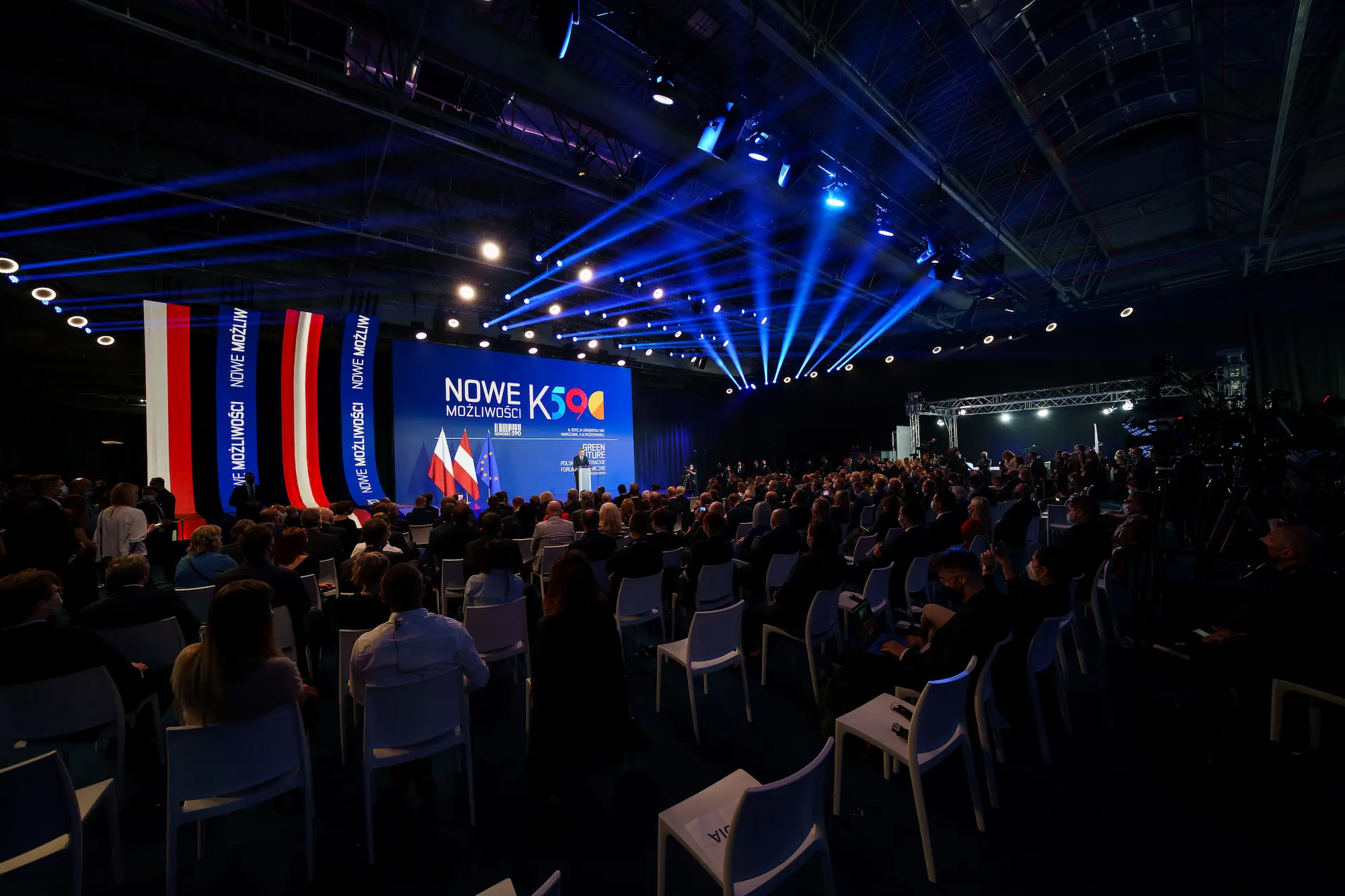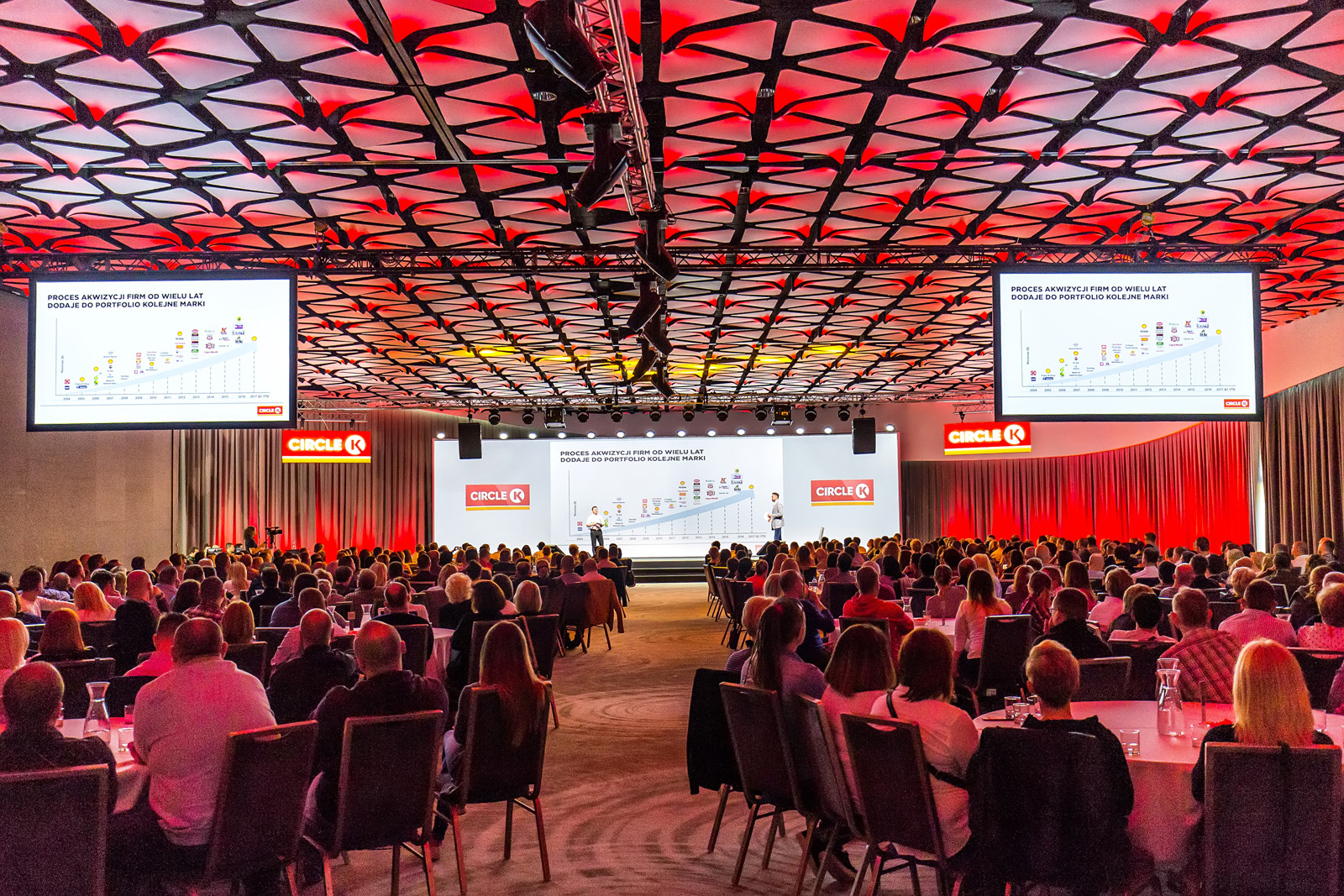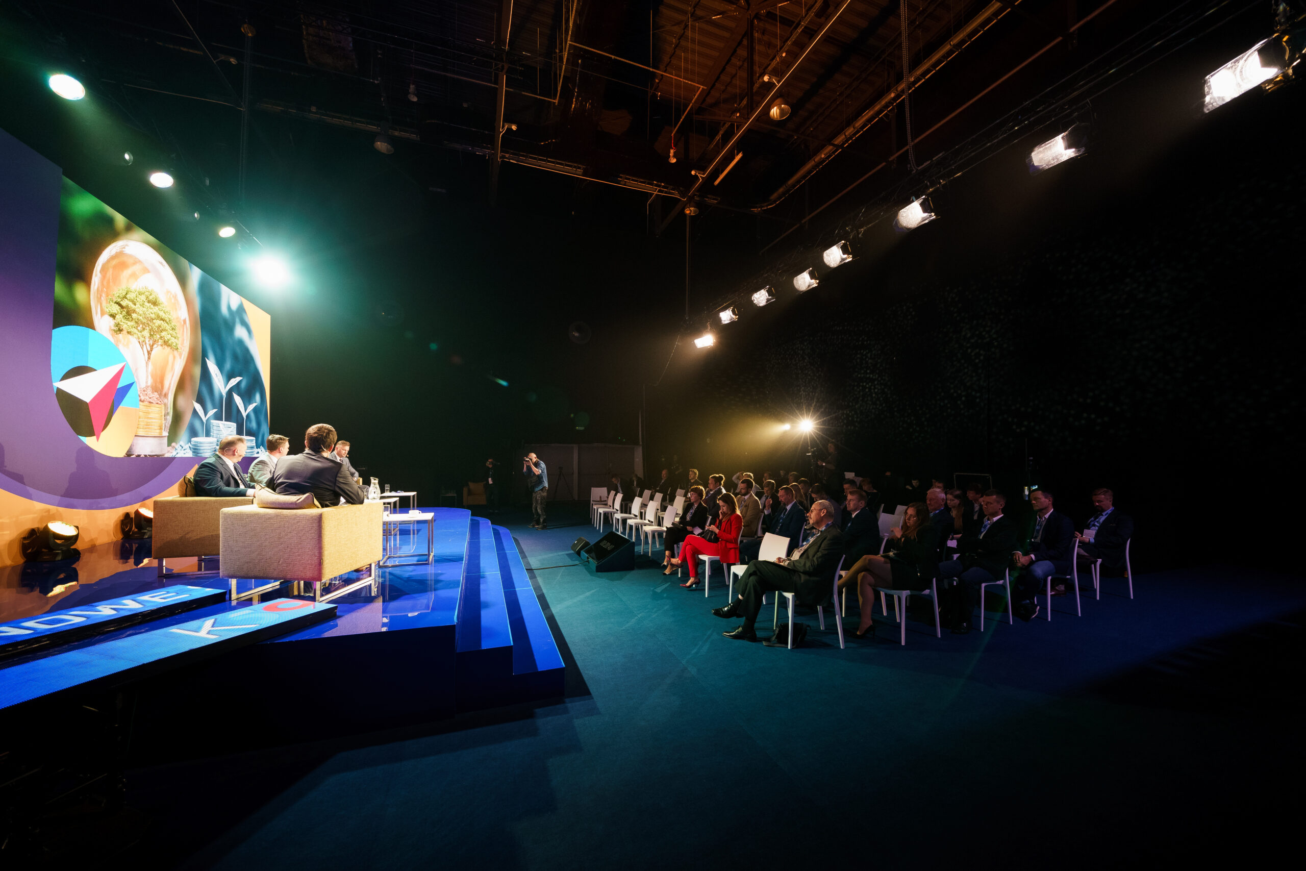 Konferencje i kongresy: Profesjonalizm i czytelność. Dobrze oświetlona scena. Czytelne oznakowania. Komfortowe przestrzenie dla uczestników. Branding subtelny, ale wszechobecny.