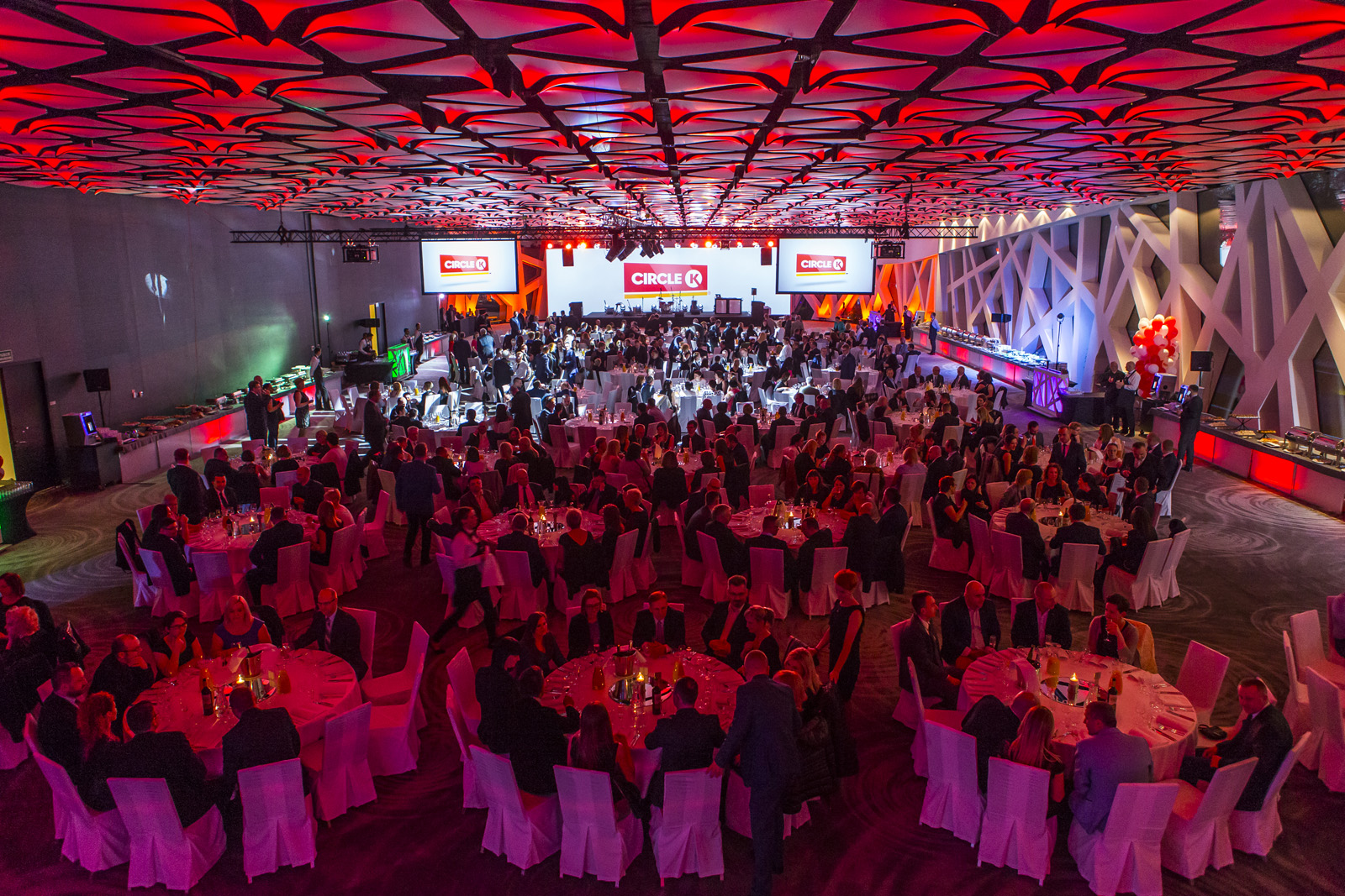 Gale i bankiety: Oprawa, która buduje atmosferę. Oświetlenie mood lighting. Dekoracje florystyczne. Eleganckie tła dla photo opportunity. Przestrzenie instagrammable – bo social media to część sukcesu.
